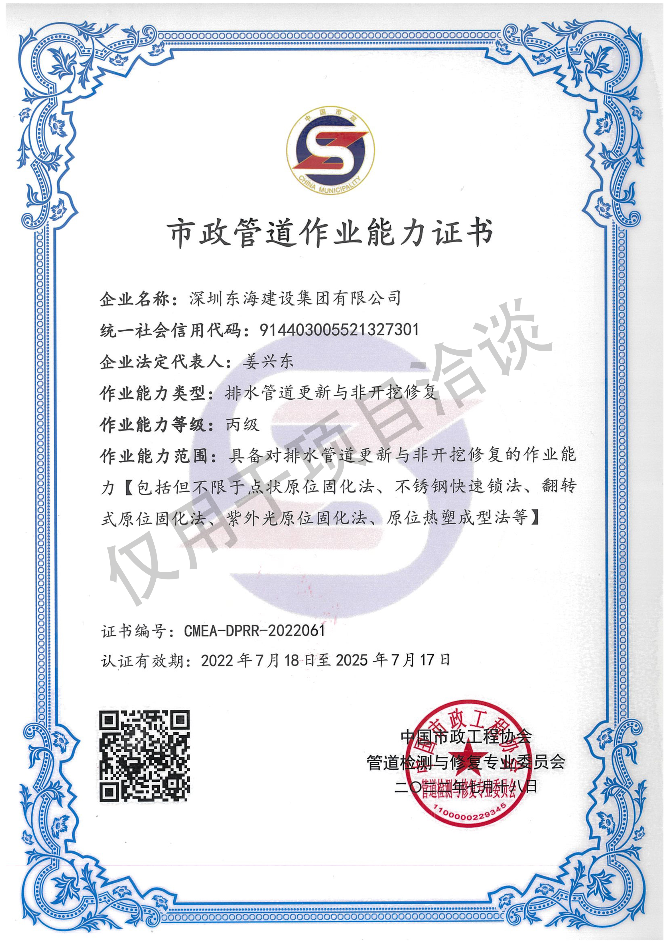 市政管道作業能力證書